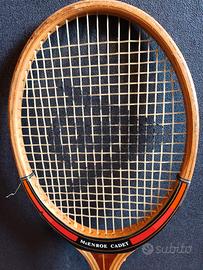 Racchetta da tennis in legno anni '80 per bambini. Marca Dunlop, McENROE cadet Lunghezza 60 cm x 22 cm Usata, mostra i segni del tempo.