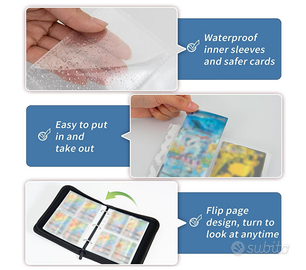 Vendo Raccoglitore carte varie , a 4 slot , 55 pagine , 440 carte disegno calcio . Nuovo . Raccoglitore carte adatto a varie collezioni , pokemon , yugi , carte calcio e sport, one pice , magic etc . Layout da 4 carte per pagina . 55 pagine per 440 carte . Trasparente. Adatto a carte con sleeve . Design flessibile con anelli ampliabile . Con zip di chiusura. Di alta qualità in pu morbido e liscio con motivo palla da calcio e colore effetto blu e bianco. Portatile con cinturino e abbastanza compatto. Per proteggere al meglio la tua collezione , anche con carte di valore e la possibilità di poterlo portare in giro in tutta sicurezza. Proteggendo al massimo le tue carte e la tua collezione.