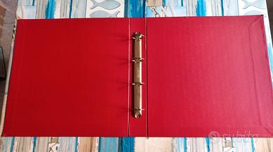 Raccoglitore copertina ad anelli formato 40x40 cm, dorso 6 cm, colore rosso, in buono stato, ben rifinito e molto robusto. Produzione di nota legatoria genovese.