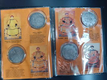 BELLISSIMA RACCOLTA DI MONETE CINESI COMMEMORATIVE della dinastia Manciu' 12 monete raffigurano gli imperatori dal 1616 al 1911.