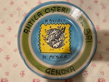 Piatto del Buon Ricordo ANTICA OSTERIA DEL BAI Genova "Ravioli di pesce" 1987