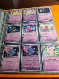 Queste carte Pokémon di colore Viola, sono in numero di circa 270, accuratamente custodite in raccoglitore e portaschede. Condizioni perfette. NESSUN DOPPIONE, posso postare solo sei foto ma nella realtà ne sono molte di piú. Quelle che sembrano doppie, sono in formato Reverse, pokerball eccetera. Vendo solamente in blocco complete di portaschede cosí come in foto. Non vendo carte singole ma solo in blocco.