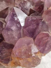 – Ametista (quarzo viola) con cristalli prismatici e zonature interne, circa 12 x 7 cm