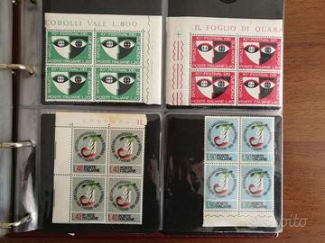 Raccolta di francobolli nuovi (Italia) quasi tutti in quartine. Sono 3 raccoglitori per oltre 2100 pezzi (più di 500 tipi diversi) e vanno dal 1966 al 1983. Potete eventualmente chiedere se c'è un particolare tipo di francobollo. Al momento cerco di dare via la collezione completa, valuterò la migliore offerta.