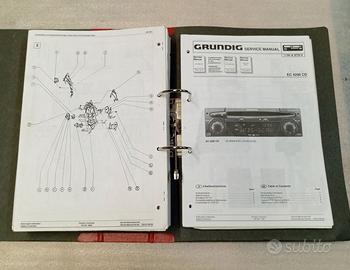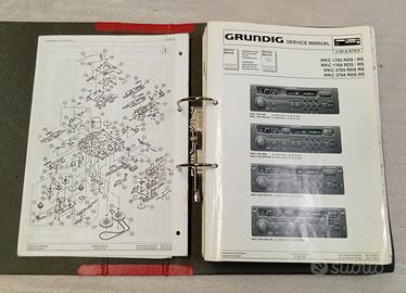 Manuali di servizio per autoradio a cassette/CD e CD changer Grundig anni '80 e '90, completi di schemi, note di servizio, lista componenti e layout circuiti stampati. Originali ed in ottimo/buono stato, contenuti in due raccoglitori ad anelli. Modelli Grundig trattati: 1100 VD, 1101 VD, 3100, 3101 1630 VD, 3630 3200 RDS, 3201 RDS, 3300 RDS, 3301 RDS 5100 RDS, 5101 RDS, 5200 RDS, 5201 RDS 5300 RDS, 5600 RDS 6400 RDS, 6500 RDS AD 182 L AD 182 H, AD 185 H AD 185 M EC 4000 RDS EC 4600 RDS EC 4290 CD EC 4790 CD EC 7400 RDS, EC 7500 RDS MCD 20 (MCD-A1) MCD 30 (MCD-A2) R 100 (D), CAR 200 D SCD 1910 RDS SCD 5290 RDS WKC 1650 VD, WKC 3650 WKC 1703 RDS/RS, WKC 1704 RDS/RS, WKC 3703 RDS RS, WKC 3704 RDS RS WKC 1800 VD, WKC 1800, WK 180 VD WKC 2040 VD, WKC 2040, WKC 3040 WKC 2670 VD, WKC 3670 WKC 2860 VD, WKC 2860 WKC 3642 WKC 3804, WKC 3804 RS, WKC 3803, WKC 3803 RS WKC 3860, WKC 3860 VD WKC 3867 VD, PA 85 HIFI WKC 3880 (MCD-A1) WKC 3904 RDS WKC 3905 RDS WKC 4860 VD, WKC 4860 WKC 4860a VD, WKC 4860a WKC 4870 RDS A WKC 5500 RDS WKC 5500 RDS C (MCD-A1)
