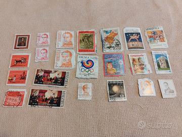 22 francobolli del Venezuela , ritagliati da lettera e cartolina dietro e attaccata ancora la carta ,