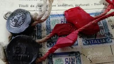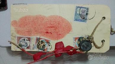 vendo cartolina raccomandata assicurata con affrancatura in lire + 2 sigilli di piombo e ceralacca
