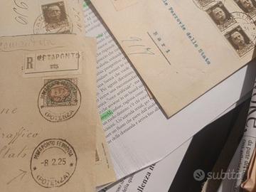 Vendo busta viaggiata raccomandata del 1925, spedita dall’ufficio Metaponto Ferrovia (Potenza) al settore Movimento e Traffico delle Ferrovie dello Stato di Bari.