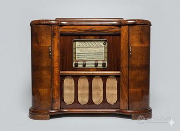 Mobile: Splendido mobile originale in radica di noce lucida dalle linee curve tipiche del periodo. La verniciatura è in ottimo stato di conservazione, come da foto.