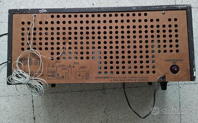 Radio d'epoca Radiomarelli, modello simile alla RD272 o RD271, celebre marchio italiano attivo dal 1929. Radioricevitore vintage in legno. Bande di frequenza: Onde Medie (OM), Onde Corte (OC) e Modulazione di Frequenza (FM). Scala parlante con indicazione di stazioni internazionali europee.