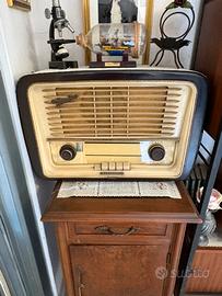 Vendo splendida radio a valvole Telefunken Mignonette originale degli anni ’50, un vero pezzo di storia dal design vintage intramontabile. 📻 Caratteristiche principali: •Marca: Telefunken •Modello: Mignonette •Periodo: anni ’50 •Tecnologia: radio a valvole (supereterodina) •Bande: onde medie e corte •Mobile in legno con frontale in plastica originale ✨ Condizioni: •Esteticamente molto ben conservata (come da foto) •Oggetto ideale per collezionisti o arredamento vintage •Completa di manopole e componenti originali 💡 Perfetta come: •pezzo da collezione •elemento d’arredo retrò •regalo originale per appassionati di vintage 📍 Visionabile di persona 📦 Possibilità di spedizione