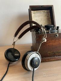Condizini cone da foto (presente crepa sul pannello), parte elettrica completa. Dotata di cuffia Fatme. L’apparecchio faveva parte della collezione di Don Patané (esposto alla “mostra storica della radio” svoltasi a Gaione (PR) dal 7 al 23 dicembre 1984, da cui é tratta una foto del presente annuncio)
