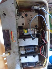 Radio geloso a valvole G309. La radio non è stata collegata alla corrente elettrica per evitare danni. Ha delle rotture e anche all'interno ci sono parti violenti. Sembra completa però verificare la foto dell'interno. Le vidi vero coperchio non sono originali. Vedere bene le foto per le condizioni generali. La vendo nello stato in cui si trova visto e piaciuto. È un pezzo da collezione.