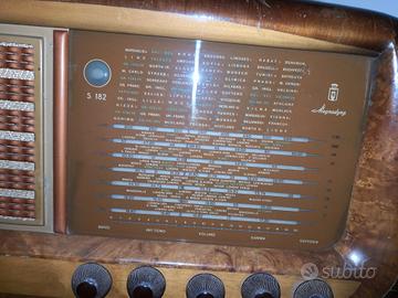 Radio d'epoca Magnadyne S 182. Risale agli anni '30-'40 ed era una radio di fascia alta grazie all'ottima qualità audio del suo impianto valvolare. Attualmente è una radio da collezione di alto valore completa di mobiletto con giradischi. 800 euro