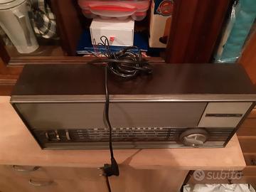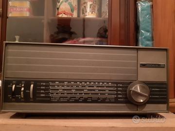 Vendo bella radio da collezione. Si tratta di una Mivar modello R33, prodotta in Italia negli anni 60. Telaio mobile in legno con fondo in masonite e frontale in plastica con dettagli tipo metallo. Doppia gamma di frequenze Am e Fm. Completa, ben tenuta, alimentazione 220V. Funzionamento da verificare. Vendita as it is