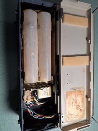 Radio primi anni '60, onde medie e tre gamme di onde corte, da da 530 KHz a 26 MHz, alimentazione a sei pile tipo torcia, buono stato estetico esterno, a parte crepa sulla scala come da foto, ottimo stato interno, contatti pile perfetti. Si accende, luce scala ok, ma si sente solo un soffio. Antenna rettangolare pieghevole come da foto. Cm 32x28x11 circa, Kg 4 circa senza pile. Per altre info chiedete pure.
