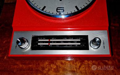Vendo orologio con radio, oggetto vintage anni '70 marcato MusiClock, colore arancione tipico del periodo, in buone condizioni estetiche con segni evidenti nel posteriore che evidenziano l'eta'. L'orologio e' perfettamente funzionante con batteria propria, la radio ha un ricevitore AM a onde medie e non FM che pur essendo funzionante non riproduce stazioni radio. Oggetto ideale come complemento d'arredo o ad uso collezionistico.