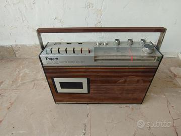 Si tratta di unradioregistratore a cassette Poppy TR-1678Lanni 70. È descritto come un "4-Wellen-Radio Cassetten Recorder" (registratore a cassette radio a 4 onde) progettato per funzionare sia con alimentazione di rete che a batteria