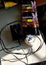 In dotazione alla radio sveglia offro 4 batterie per il funzionamento, alimentatore per alimentazione alla presa domestica ed adattatore per presa domestica, in quanto la presa originale ha l' ingresso per prese degli Stati Uniti.