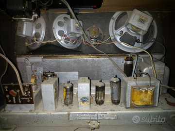 Radio a valvole FM con giradischi, conservato in ottimo stato e funzionante,anni 50 marca Unda con trattamento antitarlo a microonde già effettuato e valvole di ricambio. No perditempo.