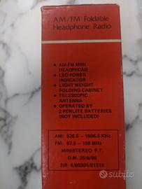 Vendo radio vintage con cuffie pieghevole. Confezione originale con istruzioni. Buone condizioni, usata pochissimo