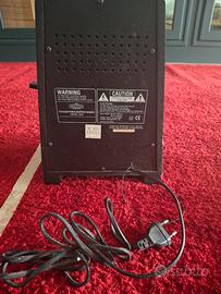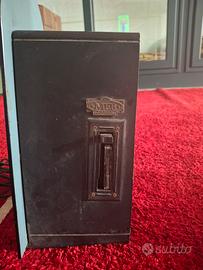 Radio Vintage con Lettore a Cassette – MEB Sound, Stile Retro Affascinante radio dal design retrò, prodotta da MEB Sound, caratterizzata da una struttura elegante con frontale lucido e dettagli decorativi verticali che richiamano lo stile delle radio d’epoca degli anni ’30, reinterpretato in chiave moderna. L’apparecchio è dotato di scala analogica centrale con indicatori di frequenza e comandi frontali metallici. Sul retro è presente un lettore di cassette integrato, elemento distintivo che aggiunge valore funzionale e nostalgico all’oggetto. Il design compatto e decorativo rende questo pezzo ideale sia come oggetto da collezione che come complemento d’arredo vintage. Caratteristiche Marca: MEB Sound Radio analogica con scala frontale Lettore cassette integrato sul retro Design retrò ispirato alle radio classiche Materiali: plastica e metallo con finitura lucida Condizione Buone condizioni generali con lievi segni d’uso. Esteticamente ben conservata. Funzionalità da verificare (venduta come oggetto vintage). Provenienza Acquistata nel mercato dell’antiquariato / usato. Note Perfetta per collezionisti di elettronica vintage Ideale come elemento decorativo retrò Pezzo originale di produzione moderna in stile d’epoca