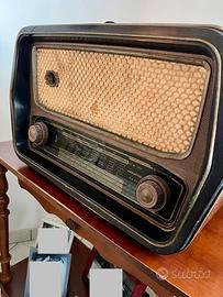 Pezzo da collezione anni '60. Funzionante. Include altoparlante e comandi per la sintonizzazione di diverse bande d'onda (FM, AM, onde medie, corte e cortissime).