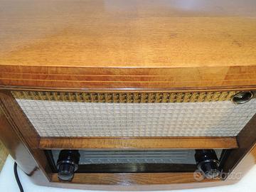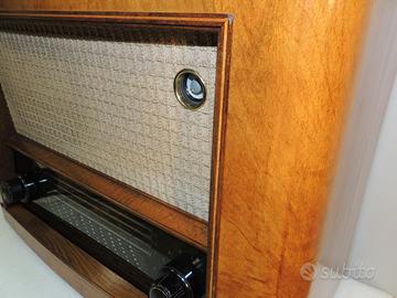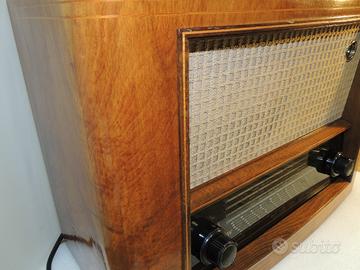 Marca EAW ELEKTRO APPARATE WERKE modello AT-SUPER 660Wk3 prodotto in Germania est nel 1954/1955, monta 6 valvole : ECH11 EBF11 EF11 EL11 EM11 AZ11, 3 gamme d'onda OL OC e OM, ha 1 altoparlante da 22 cm, magnetodinamico e con bobina di campo, chassis totalmente originale, revisionato e funziona ottimamente, è in perfetto stato di conservazione, esternamente il mobile leggermente restaurato e lucidato. Dimensioni (LxAxP) 580x410x285 pesa 13,5 Kg Schema elettrico originale a corredo. Dati radiomuseum