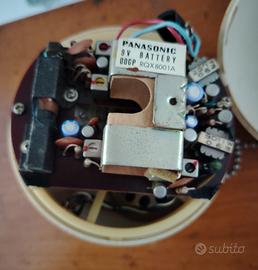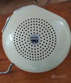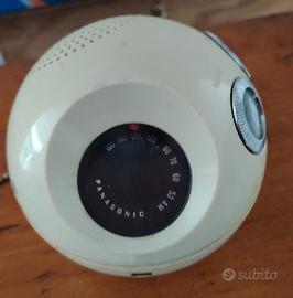 radio Panasonic Panapet R-70, un iconico dispositivo da collezione prodotto nei primi anni '70. Design:Presenta una forma sferica distintiva, spesso definita "palla e catena". Caratteristiche:È una radio AM dotata di una catena per il trasporto e due manopole circolari per la sintonia e il volume. Produzione:Lanciata intorno al 1970, rappresentava uno stile pop e colorato rispetto ai design più austeri dell'epoca. Colore:Questo specifico modello è di colore bianco, una delle tante varianti vivaci prodotte.
