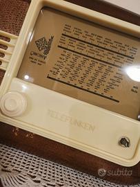 Vendo radio vintage modello Telefunken, serie del Giubileo. Mancante di un pomello, ottimo stato di conservazione. Per amanti del genere. Sicuramente serve un po' di manutenzione per rimetterla a nuovo e in funzione. Ma è una sfida per gli appassionati! Prezzo trattabile.