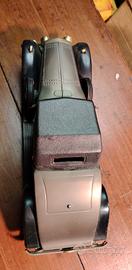Radio AM funzionante a forma diRolls Royce Phantom II del 1931. Tipo di oggetto:Radio d'epoca da collezione, spesso prodotta da marchi come Radio Shack. Dettagli:Riproduzione dettagliata in metallo pressofuso (die-cast), spesso con ruote girevoli e pneumatici in gomma. Funzionalità:Radio AM a transistor alimentata a batterie. Stato:Oggetto vintage ricercato dai collezionisti di radio e modellini d'auto.