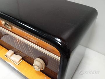 Marca EI modello RR240 prodotto in Yugoslavia nel 1960 circa, monta 5 valvole, ECH81 ECH81 EL84 EZ80 EM80 ha solo 2 gamme d'onda OM, e OC chassis revisionato e reso funzionante, mobile completamente restaurato. Dimensioni (LxAxP) 530x230x200 mm peso 7 Kg Schema a corredo. Dati radiomuseum.