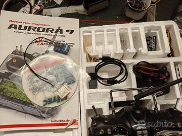 radiocomando aurora 9 touch screen con ricevente imballo e istruzioni più lipo, illa radio funziona bene, il display fa qualche riga, ma non influisce il buon funzionamento...