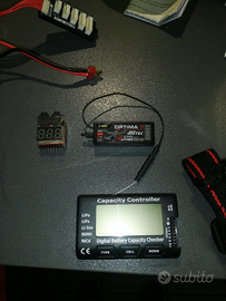 Vendo il seguente materiale solo in blocco: radiocomando hitec flash 7 con ricevente optima 7 e batteria lipo +valigetta alluminio Tester batterie Caricabatterie bilanciato N2 pacchi batterie lipo 3s 2200m Radiocomando per similatore
