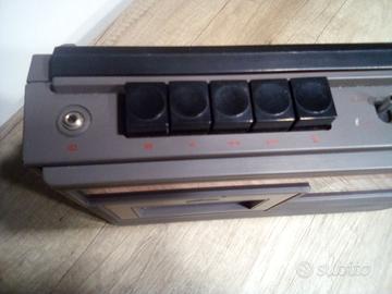 Radioregistratore portatile vintage AM/FM, alimentato sia a corrente che a batterie. In ottime condizioni e funzionante.Manico per il trasporto. Scatola originale. Mis. 28x18x7