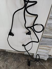 Apparecchio di comunicazione vintage, composto da un microfono con archetto auricolare e un'unità di controllo/trasmissione, ideale per collezionisti di attrezzature militari, radiotelegrafia o come pezzo di scena.