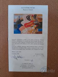 L’opera proposta in vendita è numerata I/L essendo la prima della serie di 50 e corredata di Certificato di Autenticità(vedi foto), autenticato con firma della Fondazione Fiume e rilasciato dall’editore La Spirale 2000 di Milano a norma del codice dei beni culturali e del paesaggio (d.lgs. 22/01/2004n.42) nel luglio 2005.