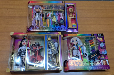 Nuove!!! Perfette!Ancora nella confezione originale! Mai aperte! 18 bambole da collezione "Rainbow high" prima serie (6 bambole) + seconda serie (6 bambole) + terza serie (6 bambole) ed altre Special (vedi foto). Non separo le serie, vendo minimo una serie composta da 6 bambole, le special le vendo anche singolarmente. Pagamento contanti, PayPal o bonifico bancario. Ritiro di persona o eventuale spedizione tracciata, il tutto gestito da me. Prima di acquistare per qualunque informazione in merito e altre foto reali non esitate a chiedere. Grazie!