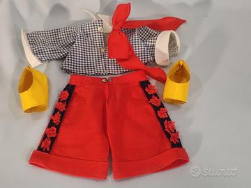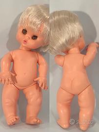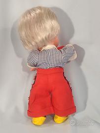 Delizioso Bebè MODESTINO della FURGA, anno 1965, creazione Signora Fanny Giuntoli; con marchio Furga Italy dietro al collo e sulla schiena; alto cm. 38. Bambola interamente in vinile, con capelli biondi ben radicati, lavabili e pettinabili, occhi dormienti con lunghe ciglia di cotone. La bambola è in eccellente stato di conservazione e completa di abiti originali in ottimo stato: camicina di cotone bianca e blu, grande fiocco rosso, pantaloncini rossi e scarpe gialle. Veramente molto bello!!! GUARDATE LE FOTO PER UNA MIGLIORE DESCRIZIONE. Posso consegnare ad Ancona e limitrofi, concordando con massima serietà Oppure spedire in tutta Italia