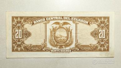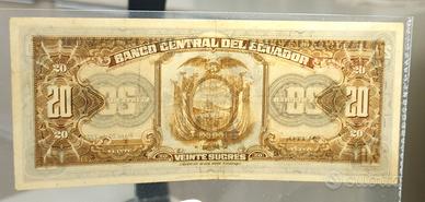Bellissima e rara banconota da collezione e non in corso di validità di "20 Sucres Banco Central del Ecuador" del 1971