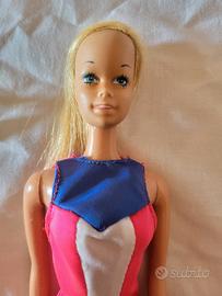 Rarissima Barbie Mattel Gold Medal Olympic del 1975 vintage autentica (NON riproduzione), provvista di costumino e scarpine originali. Purtroppo la bambola ha i piedi molto danneggiati, le mani sono un po' morsicate ed i capelli piuttosto sfoltiti. Il costume e le scarpine sono invece in ottime condizioni. Si prega di guardare attentamente tutte le foto. Posso considerare anche offerte, purché sensate ovviamente. Non rimborso e non accetto restituzioni. Da collezione, ideale per appassionati.