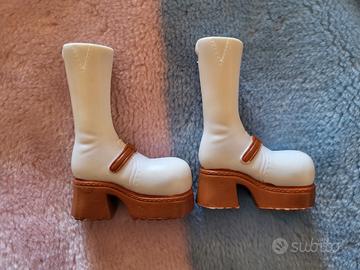 Rarissima Bratz Cloe "Cool Bratz" 1st Edition vintage del 2001. Con due paia di scarpe originali (stivali bianchi e tacchi turchesi) e outfit completo in denim azzuro (composto da pantaloni jeans a zampa, T-shirt e giacca corta). Manca però la fascetta per capelli originale. In ottime condizioni esattamente come mostrato in foto, con capelli morbidi e integri, è presente soltanto qualche lievissimo segno sul viso notabile a malapena, ma credo sia sufficiente un'accurata pulizia per far andare via tutto. Da collezione, ideale per appassionati.