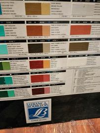 Splendido pannello espositivo vintage "Hand Made Tint Card" della Liquitex, linea Acrilico Extra-Fine. Un pezzo da collezione unico che riporta 95 campioni di colore reale applicati a mano, non stampati. Collaborazione Storica: Liquitex / Lefranc & Bourgeois (Fondee en 1720). Contenuto: Gamma completa con tinte classiche, colori Fluorescenti, Iridescenti e Interferenti. Ogni tassello indica serie, pigmento e grado di resistenza alla luce. Condizioni: Eccellenti per l'epoca, colori ancora vividi e brillanti. Struttura rigida originale. Ideale per: Collezionisti di materiale d'epoca, artisti, o come pezzo d'arredamento industriale/studio d'arte.