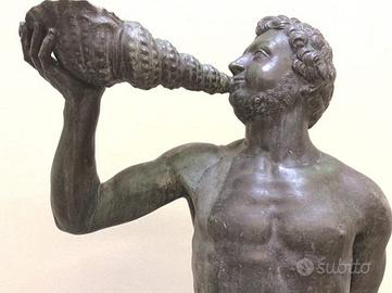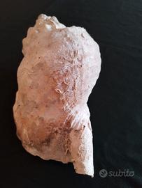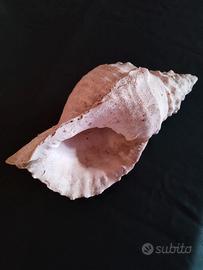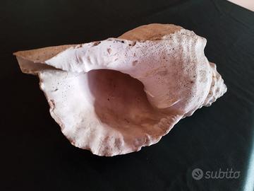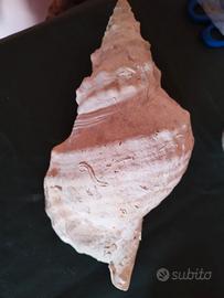 Rara conchiglia (molto probabilmente) una Charonia lampas. Questo mollusco, chiamato volgarmente tritone, è capace di raggiungere i 30 centimetri di lunghezza ed eccezionalmente anche i 40 centimetri, dimensioni che le rendono ancora più rare. La conchiglia ha una forma conica con un'apertura ovale affusolata nella parte superiore. In passato, queste conchiglie venivano utilizzate come strumenti a fiato, come trombe naturali, forse per segnalazioni o in contesti rituali e festivi. Questo mollusco è noto nel mondo antico romano e nell’area vesuviana numerose sono le attestazioni (Reese D. 2002 riferisce di 52 esemplari da Pompei, 9 da Ercolano e 1 da Boscoreale). Plinio (NH 9.130) racconta dell’uso di questo mollusco utilizzato dai romani come tromba da guerra o di avvistamento in mare(buccina) e/o strumento musicale. Tali funzioni erano rese possibili dalle notevoli dimensioni che potevano raggiungere alcuni esemplari, anche 40 cm e dal suono profondo emesso soffiando dall’apice che veniva appositamente rotto. Lunghezza cm 33 circa.
