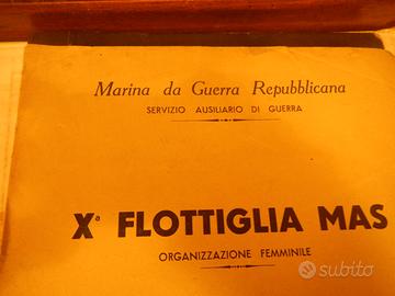 Si tratta di una copertina per libretto personale d'epoca della X Flottiglia MAS, un'unità militare speciale della Regia Marina italiana, poi associata alla Repubblica Sociale Italiana durante la Seconda Guerra Mondiale.