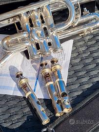 DALLA MIA COLLEZIONE PERSONALE DI STRUMENTI RARI E ARGENTATI: VENDO RARA CORNETTA ARGENTATA PROFESSIONALE GETZEN ETERNA, CON TRIGGER!!! SEMINUOVA!!! MODELLO PROFESSIONALE!! matricola SK26250, IN OTTIMO STATO, APPENA REVISIONATA! (VEDI FATTURA DEL RIPARATORE DI 250€ IN DATA 21/01/2026! OLIATA E PERFETTAMENTE FUNZIONANTE, PISTONI ESTRAIBILI, OTTIMA COMPRESSIONE, OTTIMA SONORITA', CON CUSTODIA NUOVA! (ANCORA CON TARGHETTE...). AFFARE!!