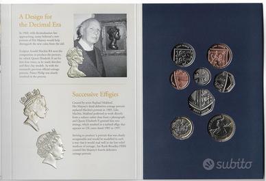 Vanta 10 monete (8 monete per il "The Definitive Set" - stemma casata Windsor ed ultimo 1 Round Pound + 2 commemorative) in finitura BU.