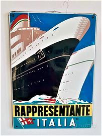 INSEGNA NAVALE ITALIA RAPPRESENTANTE GENOVA 1940 - '50 Grande insegna smaltata UFFICIALE E ORIGINALE D' EPOCA.