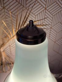 Trattandosi di un oggetto d’epoca, può presentare lievi segni del tempo, che ne testimoniano la storia e l’autenticità, ma è perfettamente funzionante e pronta all’uso. La lampada viene venduta completa di lampadina interna già montata.