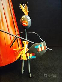 Rara Lampada tripode da scrivania/comodino anni 50 in tondino di ferro nero e pvc rosso, con guerriero Africano...molto bella e tenuta bene, lampadina a passo piccolo non inclusa consiglio una a led così non scalda.....misura h. 23 cm. Diametro 8 cm. Larghezza 16 cm.Visto è piaciuto non riprendo indietro guarda bene le foto ti arriva quella in foto, SPEDITA A CARICO VOSTRO ritiro a mano a Parabiago